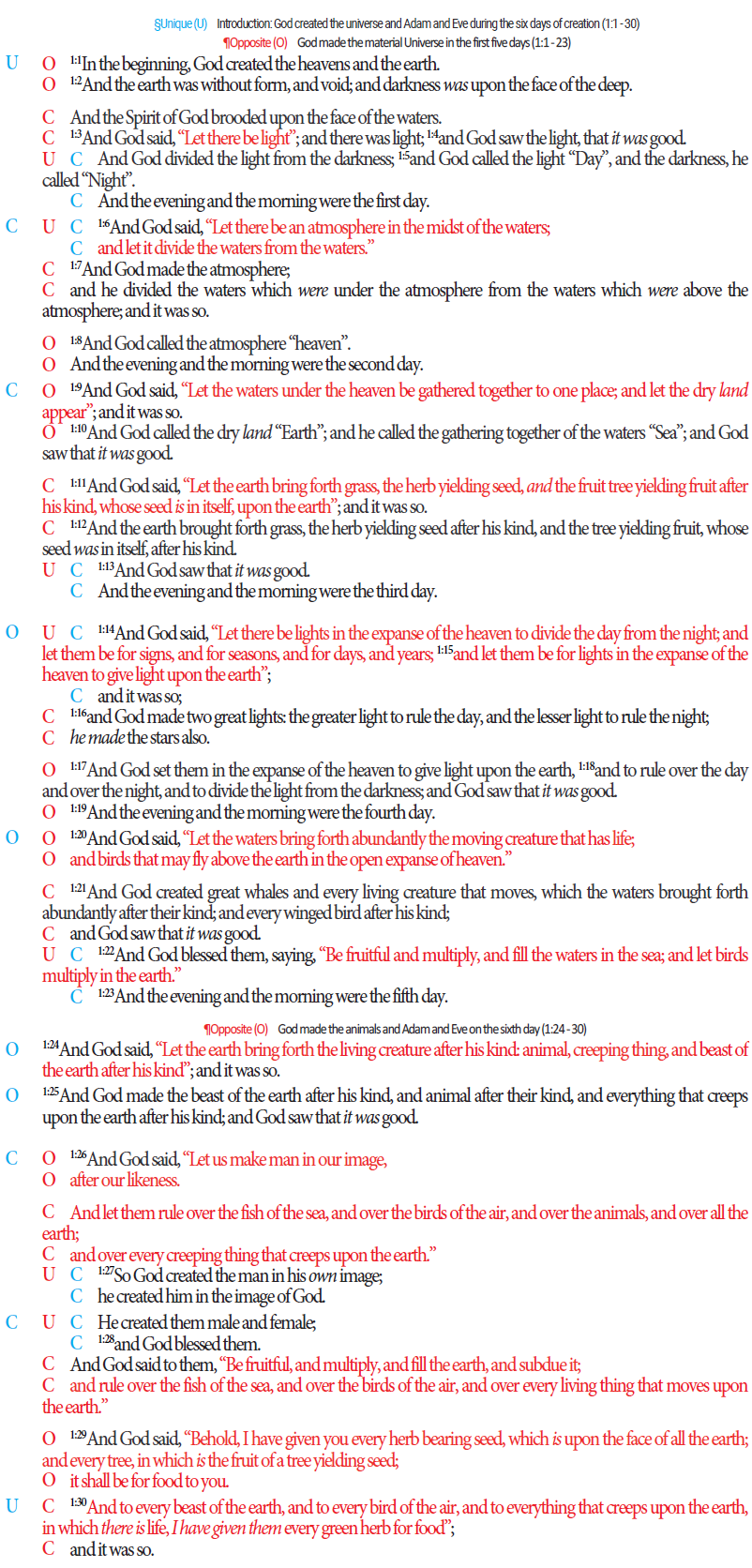 El diseño del primer capítulo de Génesis que usted ve debajo del esquema de la Biblia es extremadamente similar en todas partes en la Biblia, incluyendo Proverbios y Salmos e incluso los acrósticos. Me tomó 25 años y la ayuda del Señor Jesús para encontrarlo. Es real, no un truco.